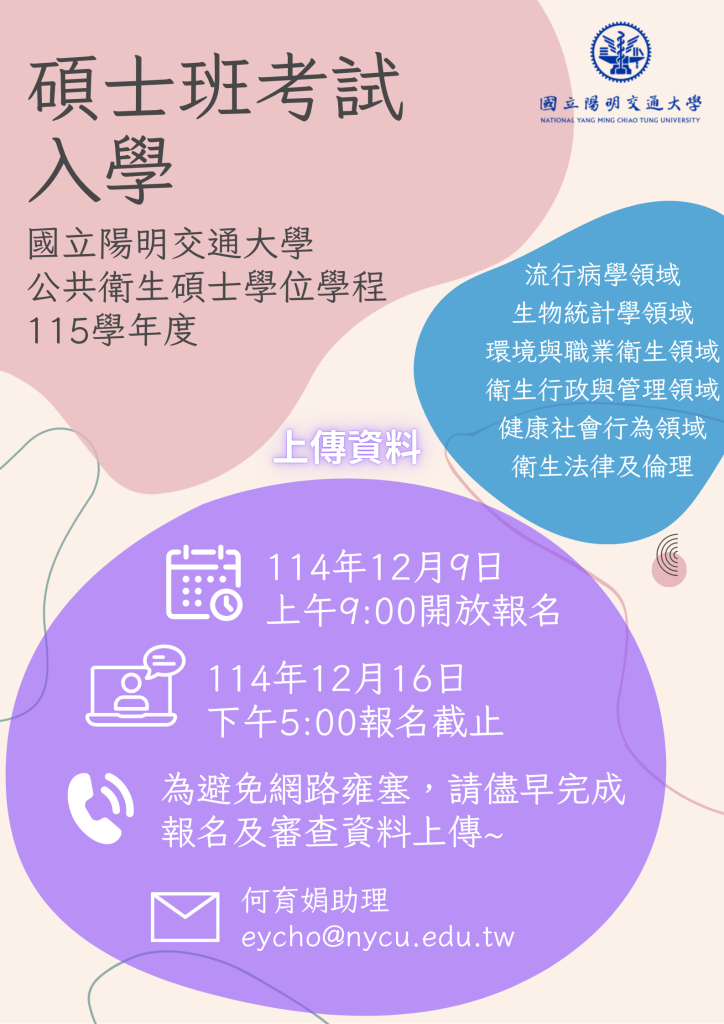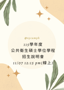 - 115學年度公共衛生碩士學位學程碩班考試入學招生簡章